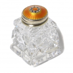 Солонка. Стекло, серебро 925 пробы, оранжевая эмаль по гильоше.