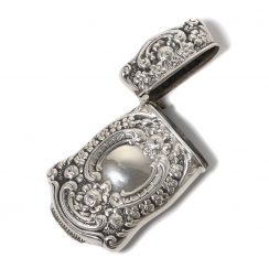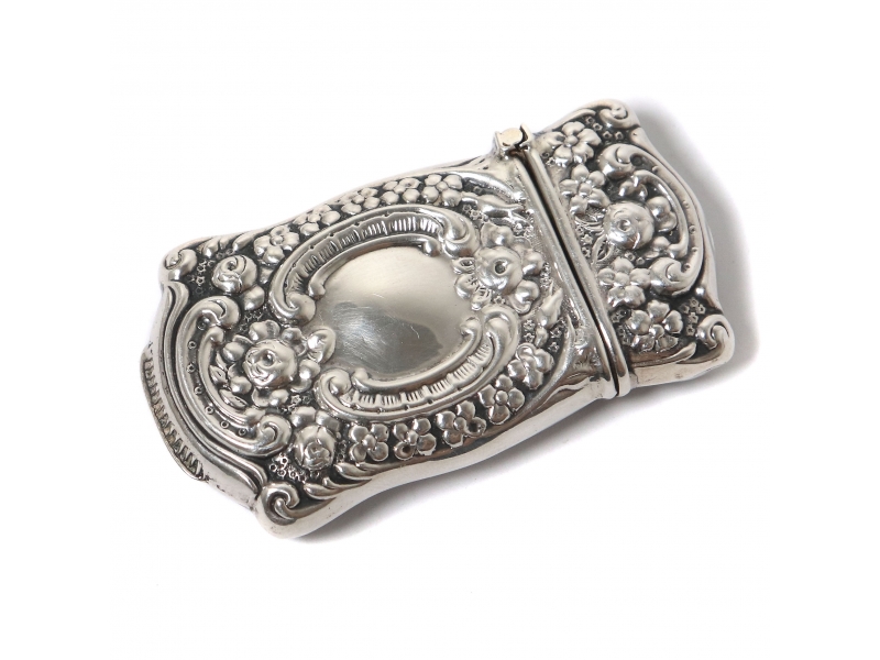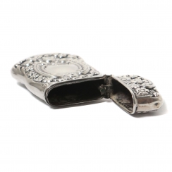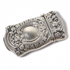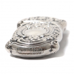 Серебряная спичечница, декорированная растительным орнаментом.
