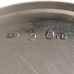 Maximum diameter: 5.6 cm, bottom diameter: 5 cm. Weight: 19 grams of silver 830 fineness.