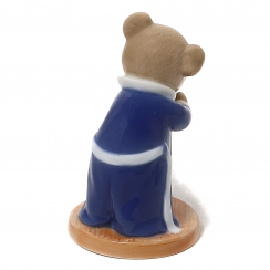 The Statuette shows happy teddy bear Victor in a moment of bathing his son Theo. He stands in his gown and he smiles holding a yellow rubber duck in his paws eager to amuse his son Theo.