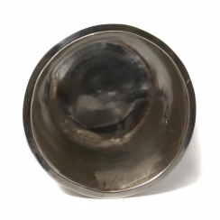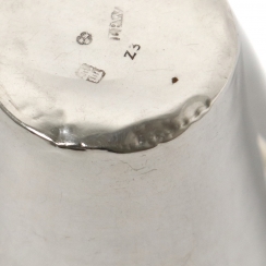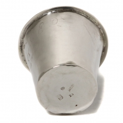 Height: 4.8 cm, diameter the of top: 5.2 cm. Volume: 45 ml. Weight: 15 grams of silver 830 fineness.