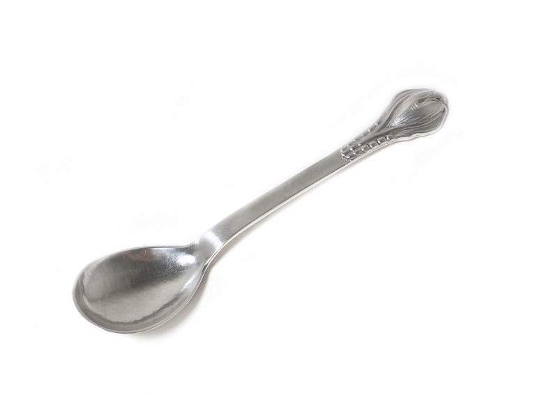 Серебряная сервировочная ложка. Поверхность ложки обработана в техники "Пескоструйной обработки".