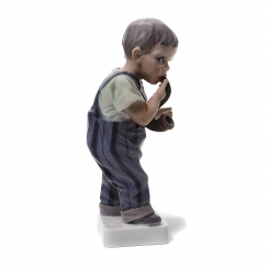 Фарфоровая фигура (статуэтка) "Мальчик с трубкой". Ручная подглазурная роспись. Дания, г. Копенгаген, Dahl-Jensen, после 1928 года. Скульптор: Dahl-Jensen, Jens Peter (годы жизни: 1874-1960). Номер модели: 1027. Инициалы художника, расписавшего статуэтку: EK . Клеймо производителя. Высота: 15 см, размер основания: 5,5 х 4,5 см. Статуэтка первого сорта. Без сколов, повреждений и без реставраций. =================================== Porcelain figurine "Boy with pipe". Hand-painted underglaze. Denmark, Copenhagen, Dahl-Jensen, after 1928. Sculptor: Dahl-Jensen, Jens Peter (years of life: 1874-1960). Model: 1027. The initials of the artist painted this figurine: EK . Factory mark. Height: 15 cm, base size: 5.5 x 4.5 cm. Figurine of the first sort. Without chips, damage and restorations.
