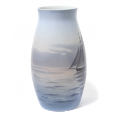 Фарфоровая ваза, декорированная пейзажем с парусником. Ручная подглазурная роспись.