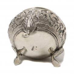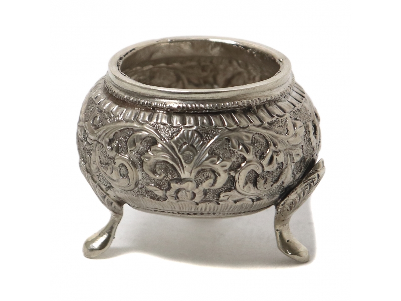 Cеребряная солонка, декорирована рельефным растительным узором.