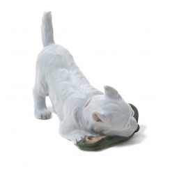 Фарфоровая фигура (статуэтка) "Терьер с тапочкой". Ручная подглазурная роспись.