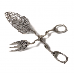 Длина: 21 см. Вес: 66 граммов серебра 830 пробы. ========================== Silver pastry tongs (pastry server).
