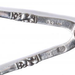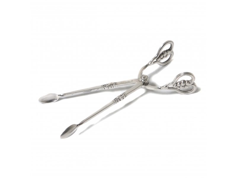 Длина: 10,3 см. Вес: 18 граммов серебра 925 пробы. ==================================== Silver sugar tongs. Pattern "Acorn", designed in 1915 by Johan Rohde.