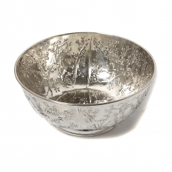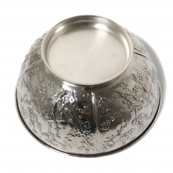 Высота: 10 см, диаметр верха: 21,5 см. Вес: 303 грамма серебра 830 пробы. =============================== Silver bowl, decorated with a relief image of cherry blossoms.