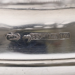 Height: 10 cm, diameter of the top: 21.5 cm. Weight: 303 grams of silver 830 fineness.