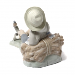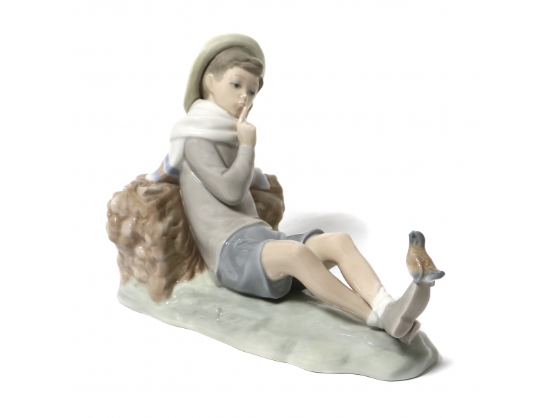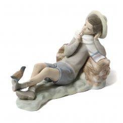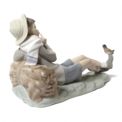 Фарфоровая фигура (статуэтка) "Пастушок с птицей". Ручная подглазурная роспись.
