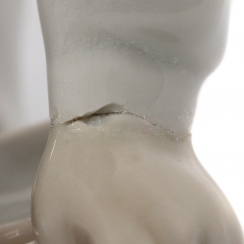 Приклеена рука с башмаками. ============================= Porcelain figurine "Little girl with slippers". Hand-painted underglaze.