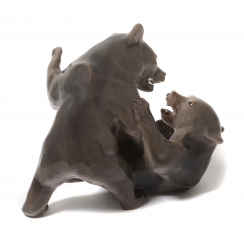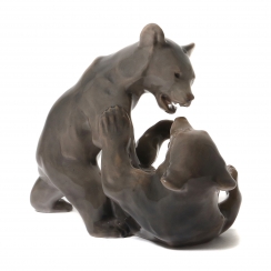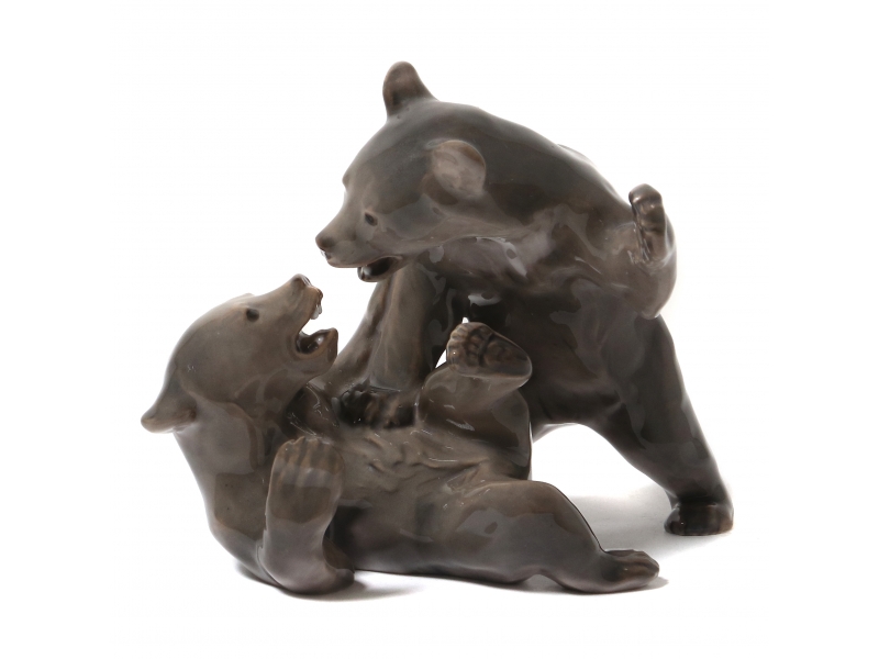 Фарфоровая фигура (статуэтка) "Играющие медведи". Ручная подглазурная роспись.