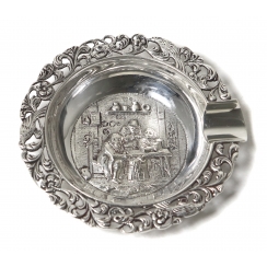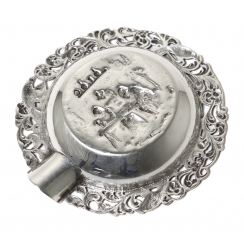 Серебряная пепельница, декорированная сюжетной миниатюрой.