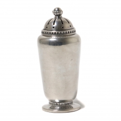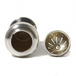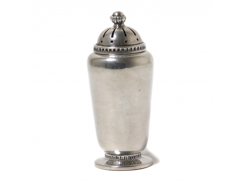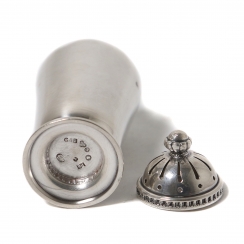 Высота: 6,5 см, диаметр основания: 2,5 см. Вес: 29 граммов серебра 830 пробы. =========================== Silver salt shaker.