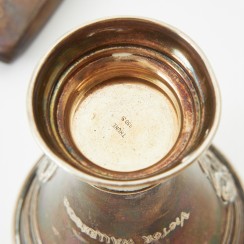![]() 356496 - Стакан в виде кубка, 73 гр, 830 пр, высота 9,5 см, диаметр верха 7,5 смвмятинка на ребре основания381361 - Стопка в виде кубка, 13 гр, 830 пр, высота 4,5 см, диаметр верха 4 смнесколько мелких вмятинок на ребре основания365905 - Мерный стакан бармена, 102 гр, высота 13,3 см, диаметр 8,2 и 6,2 смвмятина на краю383097 - Портсигар, 83 гр, 830 пр, 8,8 х 7 х 1,3 см (8,2 х 6,2 см)на крышках несколько вмятин319853 - Флакон. Стекло, серебро 925 пр. Англия. Высота 14,5 см, диаметр 3,5 см, вес крышки с пробковой вставкой 8 грвмятина на крышке |