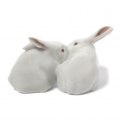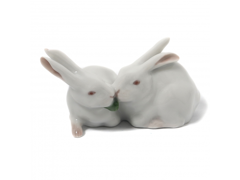 Данная модель встречается в двух видах росписи: 1252 - серые и 0 - белые. Расписанные в серый цвет встречаются крайне редко и только раннего производства. =============================== Porcelain figurine "Rabbits white - pair". Hand-painted underglaze.