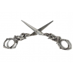 Ножницы для винограда с серебряными ручками и стальными лезвиями. Ручки декорированы виноградной лозой.