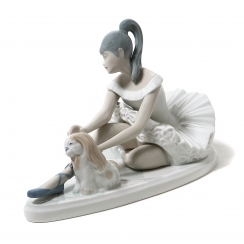 Фарфоровая фигура (статуэтка) "Балерина с собакой". Ручная подглазурная роспись.