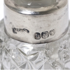 Трещина на тулове флакона, протекает. На серебряном горлышке несколько мелких вмятинок. ========================= Bottle. Crystal, sterling silver 925 fineness.