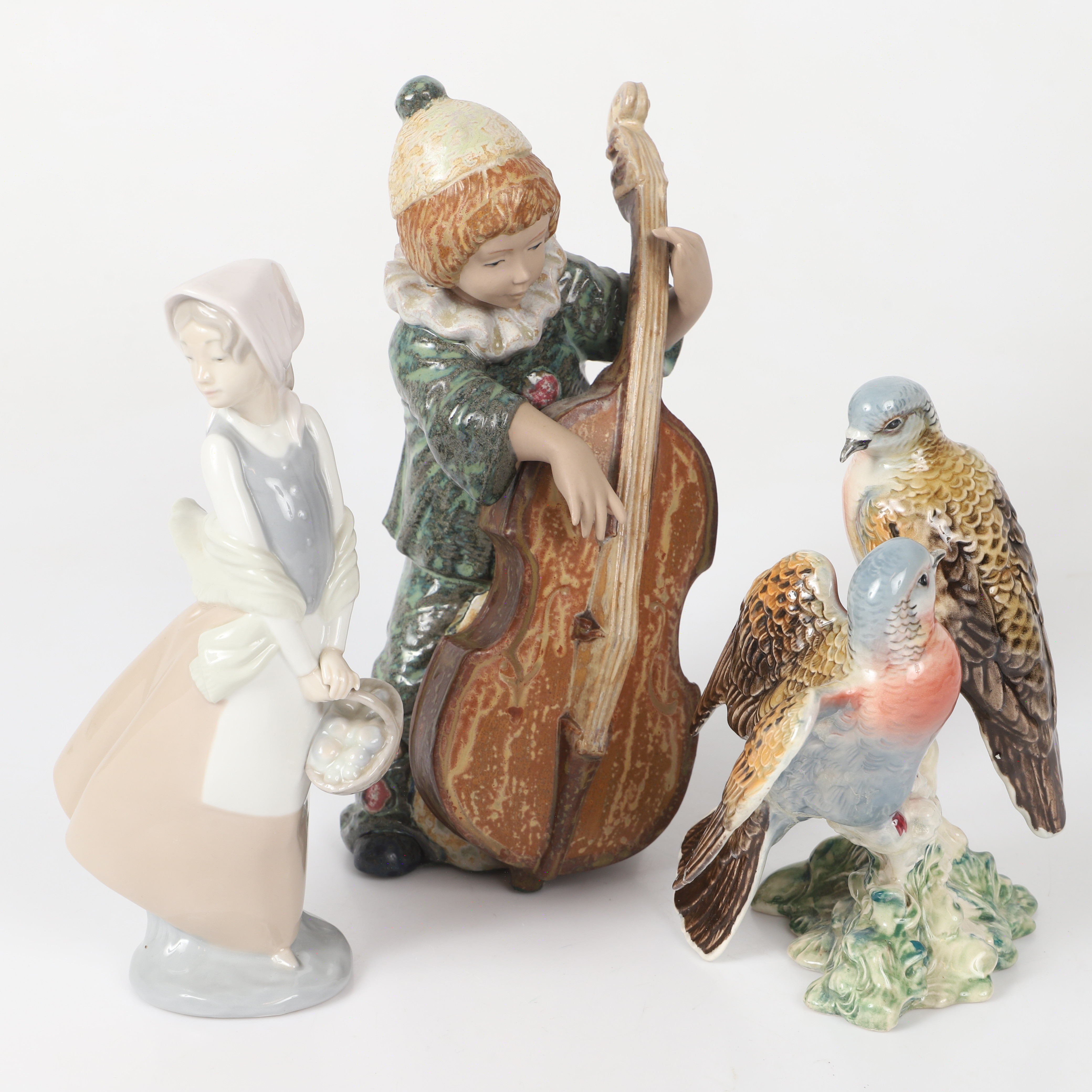 Информация о лоте 266234 - Девочка с лукошком, NLL_02000237 369910 - Мальчик Пьеро с контрабасом, высота 28,7 см, длина 13,5 см, ширина 13 см, Испания 313210 - Две птицы на ветке, высота 19,4 см, основание 11,5 х 10 см, Англия, Beswick |
