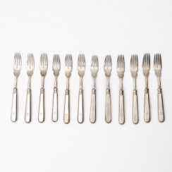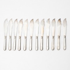 259076 - Цельносеребряные рыбные вилки и ножи на 12 персон. 24 прдмета, Российская империя (Россия), общий вес 1165 гр, 84 пр, 18,2 и 21 см