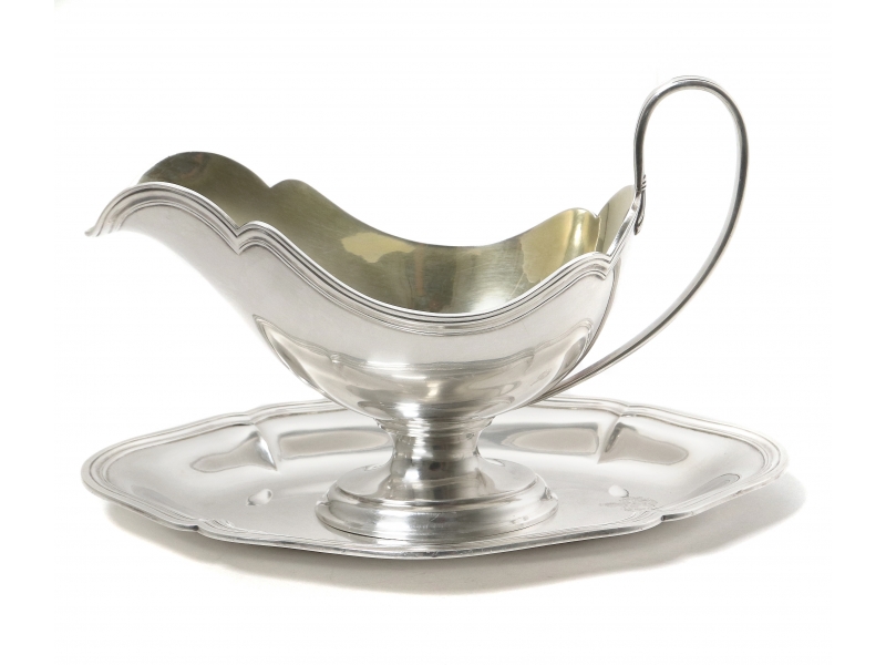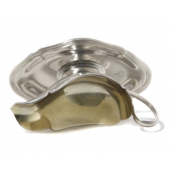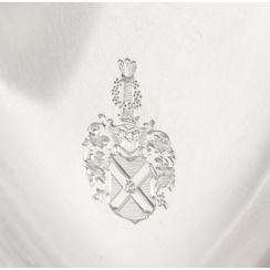 Выгравирован красивый герб. =============================== Silver gravy boat on a stand or a bowl for honey, jam.