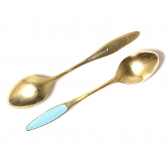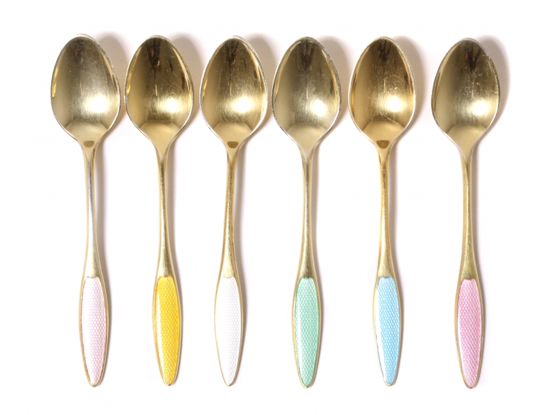 Кофейные ложки, 6 шт. Серебро, позолота, эмаль. Дизайн "Kongelys".
