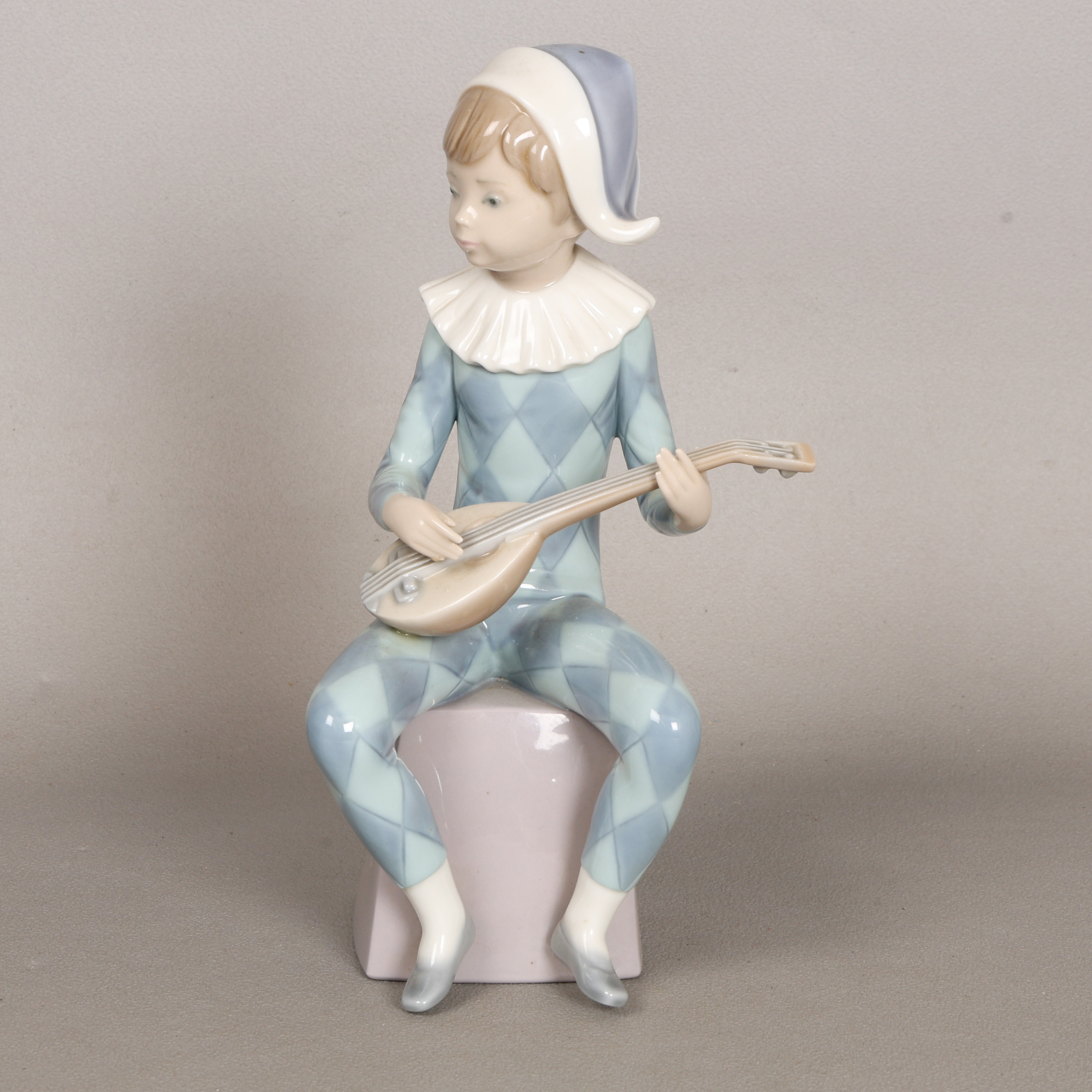 259880 - Арлекин с мандолиной, высота 21,5 см, максимальная длина 12 см, ширина 10 см, Испания, Lladro