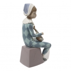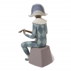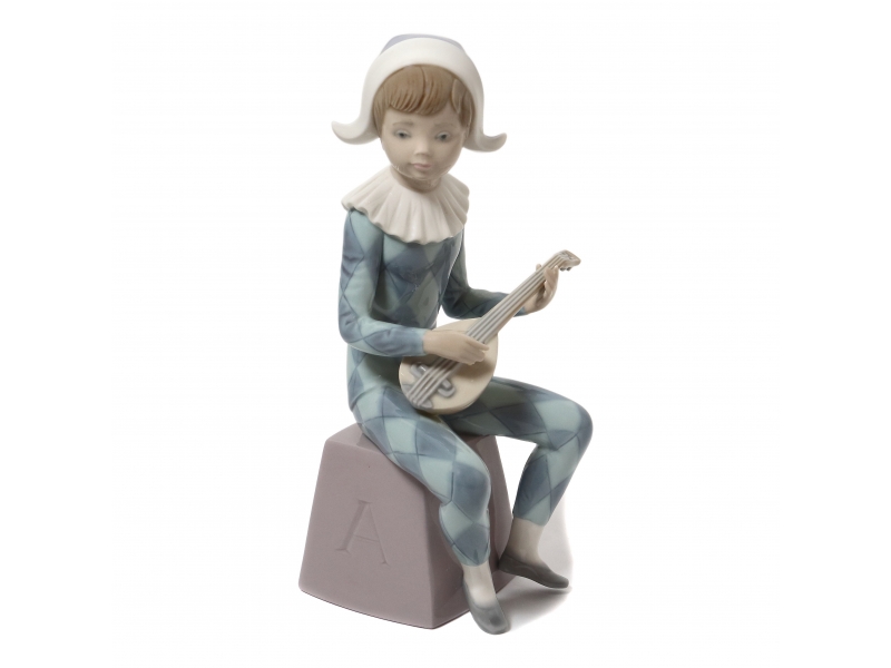 Фарфоровая фигура (статуэтка) "Арлекин с мандолиной" из серии Арлекин АВС. Ручная подглазурная роспись.