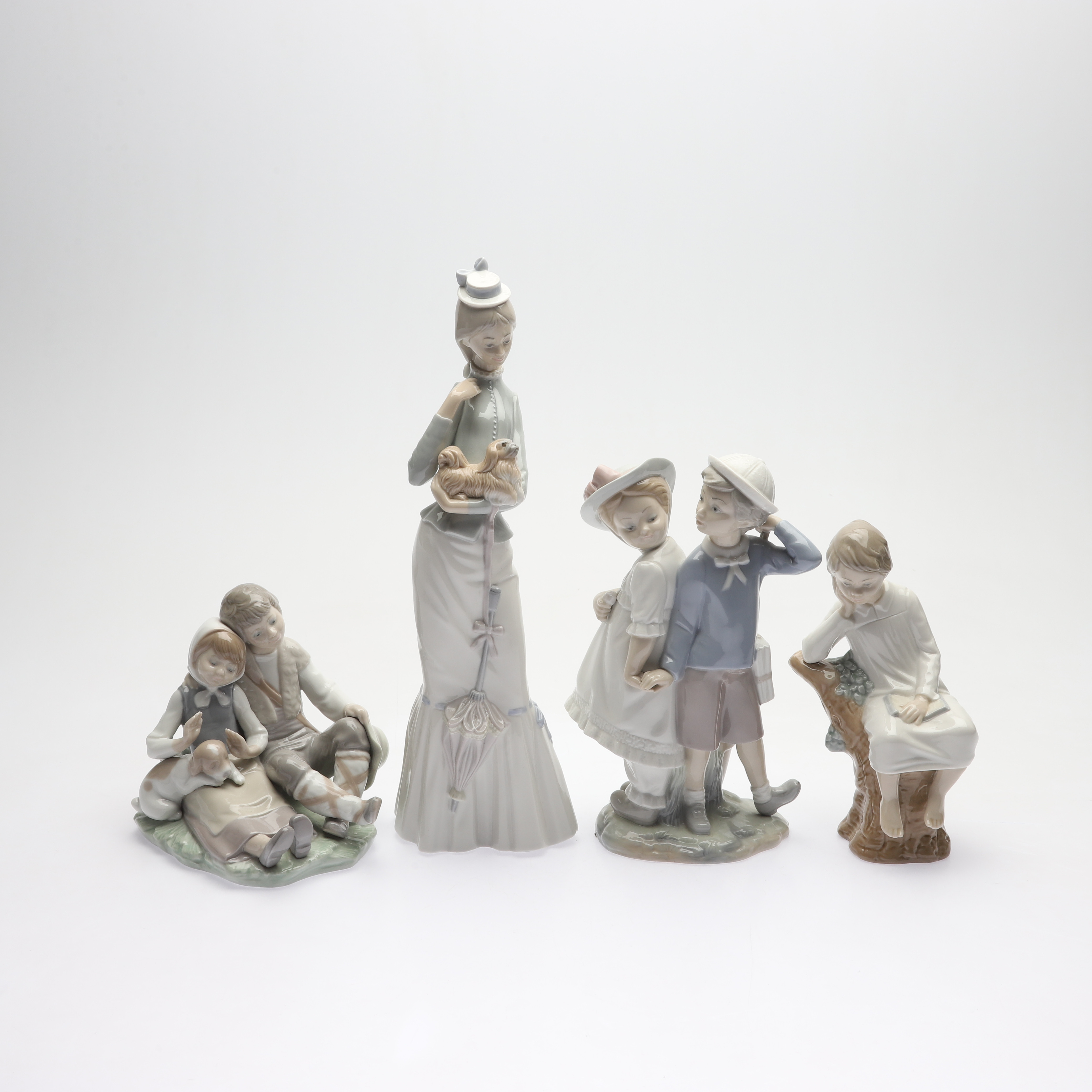 289039 - Фарфоровая фигура "Девушка с собакой". Lladro.Фарфоровая фигура (статуэтка) "Девушка с пекинесом на прогулке". Ручная подглазурная роспись.