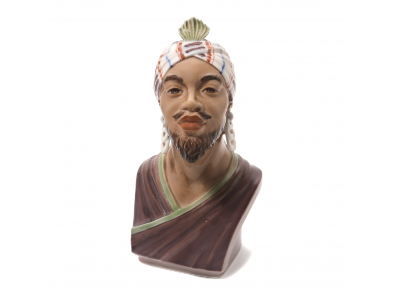 Фарфоровая фигура (статуэтка) "Бюст индуса" (название по каталогу Попе). Ручная подглазурная роспись.