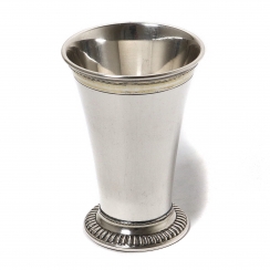 Высота: 8,5 см, диаметр верха: 6 см. Объём: 80 мл. Вес: 62 грамма серебра 830 пробы.