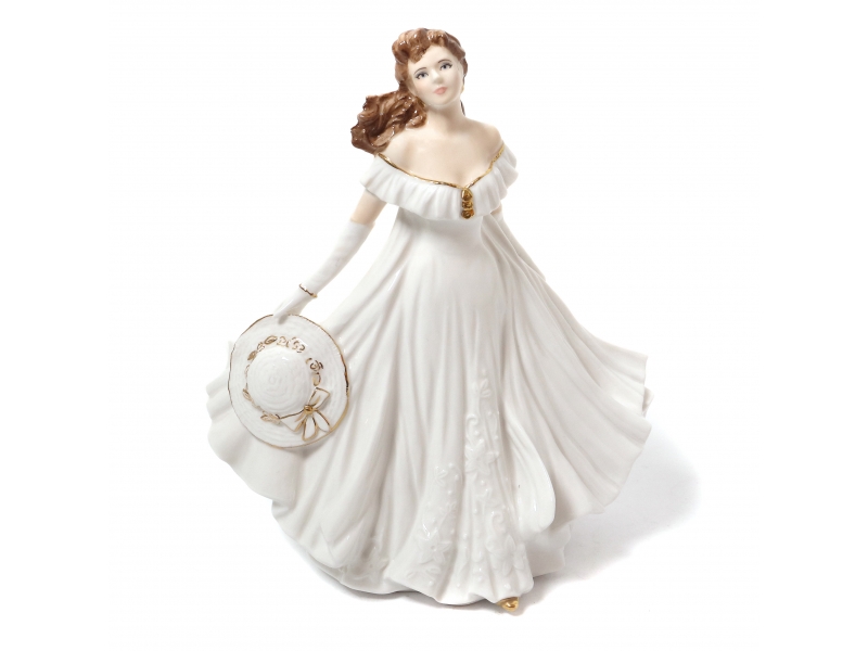 Фарфоровая фигура (статуэтка) "Дружба" (Девушка в белом платье со шляпой в руке). из коллекции "Золотые моменты". Ручная роспись.