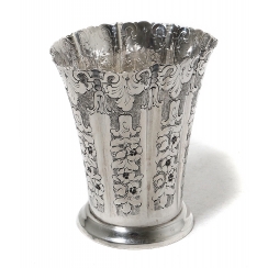 Высота: 14,5 см, размеры верха: 13,5 х 10,7 см, диаметр основания: 9,5 см. Вес: 343 грамма серебра 835 пробы. =============================== Silver vase, decorated with floral pattern.