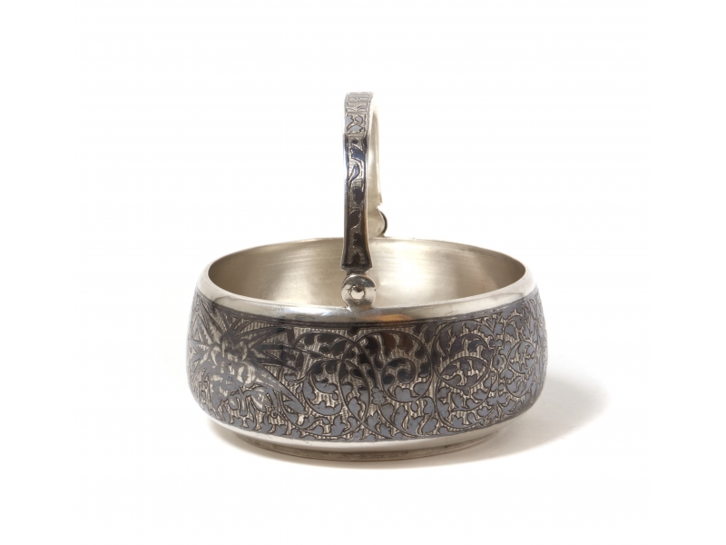 Серебряная сахарница с перекидной ручкой "Кавказ". Чернь.