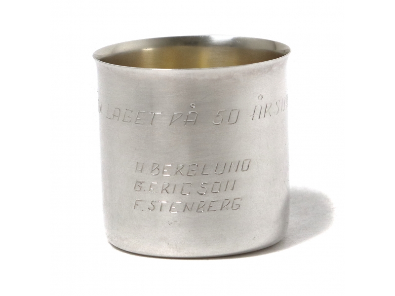 There is engraving "Från Laget på 50 årsdagen H. Bergluno G. Ericson F. Stenberg".