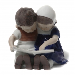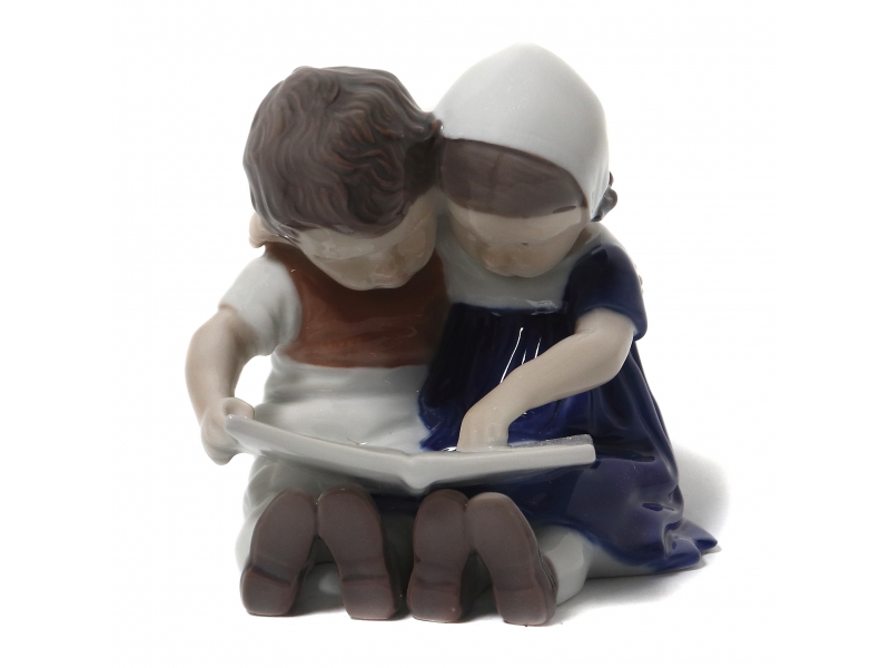 Фигура производилась также после объединения фабрик Royal Copenhagen и Bing & Grondahl (1985-1989) под брендом Royal Copenhagen, номер модели: 402. ============================== Porcelain figurine "Children reading". Hand-painted underglaze.