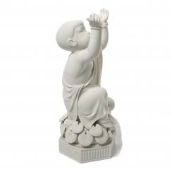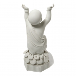 Фарфоровая фигура (статуэтка) "Ребёнок с поднятыми вверх руками" (Маленький Будда). Нерасписанный белый фарфор. Белая глазурь.