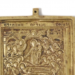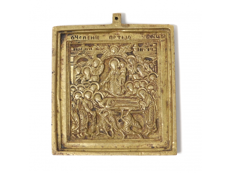 Размеры (без подвеса): 5,3 х 5,7 х 0,4 см. ===================== Cast icon "The Dormition of the Blessed Virgin Mary".