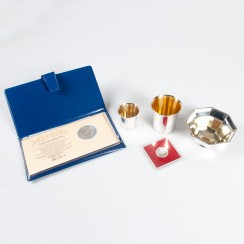 Height: 6.5 cm, diameter of the top: 6.5 cm. Volume: 120 ml. Weight: 54 grams of silver 830 fineness.