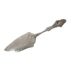 Серебряная сервировочная лопатка, декорированная цветочным узором и лебедем на ручке.