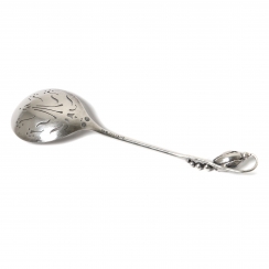 Серебряная сервировочная ложка с перфорированным черпаком. Дизайн "Магнолия" (Magnolie) разработан в 1919 году Georg Jensen.