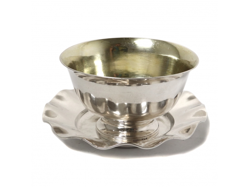 Серебряная сахарница или ваза для варенья на подставке.