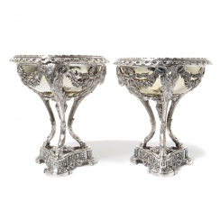 Пара ваз, общий вес 5360, максимальная высота 24 см, диаметр вставных чаш 17,5 см![]() |