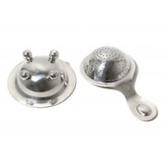 Stand height: 4 cm, length: 14 cm, strainer diameter: 7.5 cm. Total weight: 121 grams of silver 830 fineness.