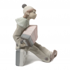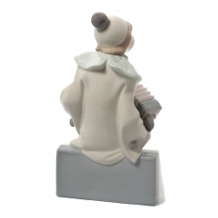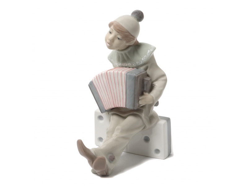 Фарфоровая фигура (статуэтка) "Клоун на домино" (Мальчик в костюме Пьеро с баяном). Ручная подглазурная роспись.