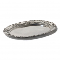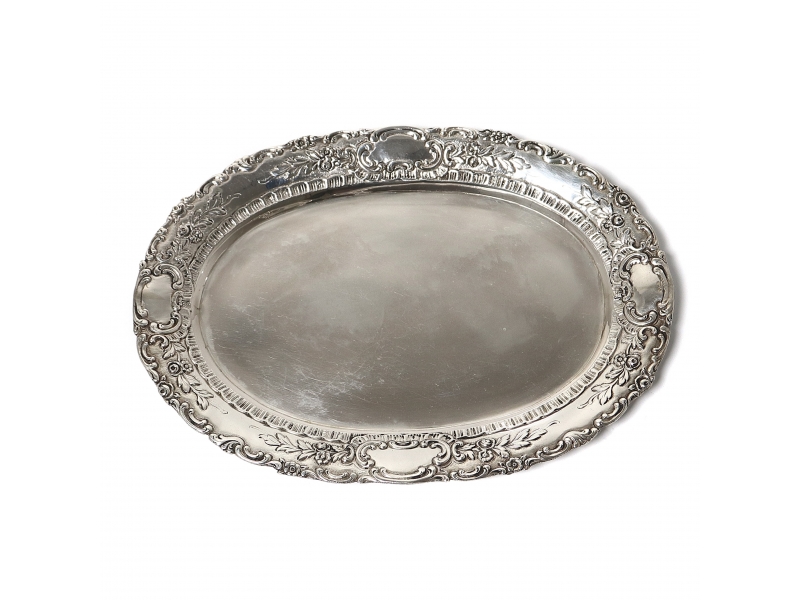 Небольшой серебряный поднос, декорированный цветочным орнаментом.