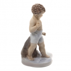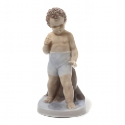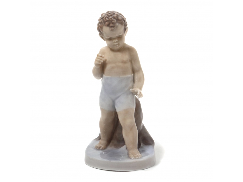 Фарфоровая фигура (статуэтка) "Купающийся мальчик". Ручная подглазурная роспись.