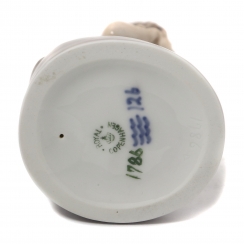 Дания, г. Копенгаген, Royal Copenhagen, 1898-1923 гг. Скульптор: Christian Thomsen (годы жизни 1860 - 1921, годы работы на фабрике: 1898-1920). Номер модели: 1786, производится с 1916 года. "126" - порядковый номер художника, расписавшего статуэтку, который работал на фабрике в 1907-1919 гг. Клеймо производителя.
